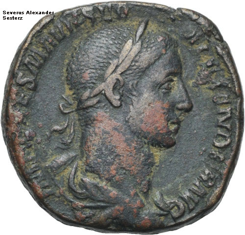 Severus Alexander wurde auf Betreiben seiner einflußreichen Großmutter Julia Maesa im letzten Jahr der Herrschaft seines Cousins Elagabal von ihm adoptiert und damit Caesar. Nach der Ermordung Elagabals übernahm er reibunglos als erst Dreizehnjähriger den Kaiserthron.
