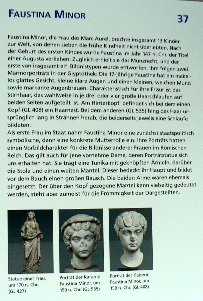 Faustina Minor war Kaisertochter des Antoninus Pius, Kaisergattin des Marcus Aurelius und Kaisermutter des Commodus. Sie gebar dem Marcus Aurelius 13 Kinder. Von denen wurde ihr Sohn Commodus Kaiser und ihre Tochter Lucilla Gattin des Kaisers Lucius Verus.