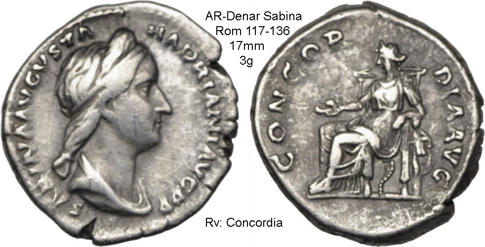 Auf dem römischen Denar ist im Revers die göttliche Personifikation der Eintracht, Concordia, abgebildet.
