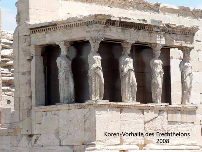 Bekannt ist das Erechtheion vor allem durch eine Vorhalle, die anstelle von