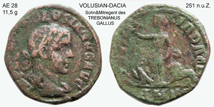 Volusian ist die Personifikation der Provinz Dacia zu sehen. Dacia steht in der