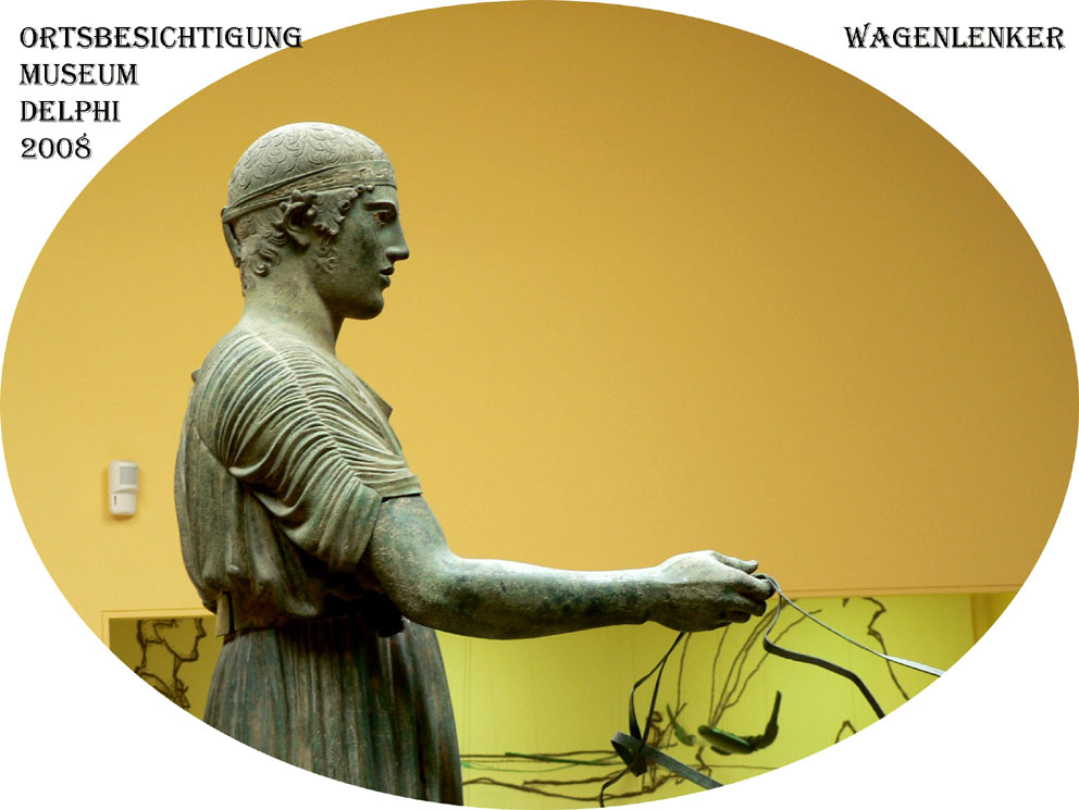 Der Wagenlenker ist als Meisterwerk der griechischen Bronzekunst in einem separaten Saal des Museums in Delphi zu bewundern. Er war Teil eines großen Weihgeschenks an den Tempel durch den Tyrannen Polyzalos der westgriechischen Polis Gela in Sizilien. Das Geschenk anläßlich seines Sieges im Wagenrennen bei den pythischen Spielen 474 v.u.Z. bestand neben dem Wagenlenker mit Viergespann auch aus zwei Einzelpferden mit reitenden Pflegern. Der Wagenlenker wurde 1896 durch französische Ausgräber entdeckt. Der antike Künstler des Meisterwerkes ist unbekannt.