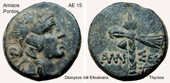 dargestellt. An der Spitze befand sich eine Bekrönung aus Efeu oder Weinlaub, in
