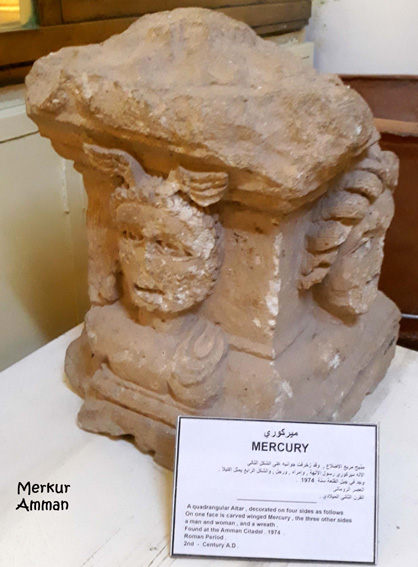 - als römischer Altarstein des 2. Jahrhunderts im Museum auf dem Zitadellenhügel in Amman (Jordanien).