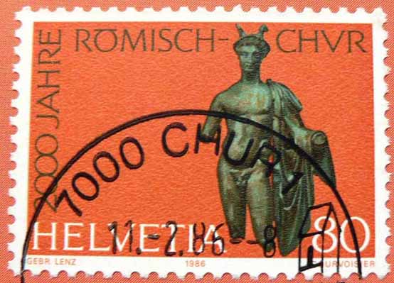 Die schweizer Briefmarkenausgabe erfolgte 1986 anlässlich des 2000jährigen Stadtjubiläums der Graubündener Kantonsstadt Chur.