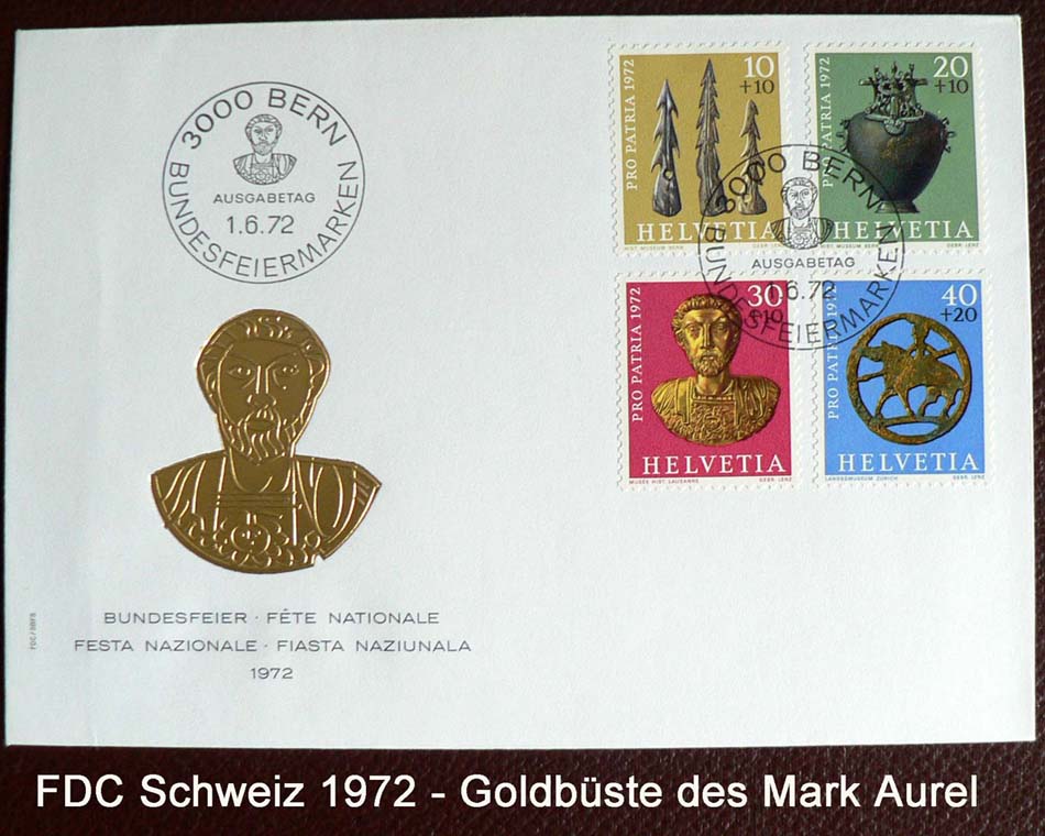 Von den vergöttlichten Kaisern wurden Kultbilder angefertigt, die zu den festgelegten Riten verwendet wurden. Die schweizer Briefmarke zeigt eine Kult-Goldbüste des Mark Aurel aus Aventicum (Avenches, 33 cm; 1,6 kg). Das Bildnis wurde zu feierlichen Anlässen bei Prozessionen durch die Stadt getragen.