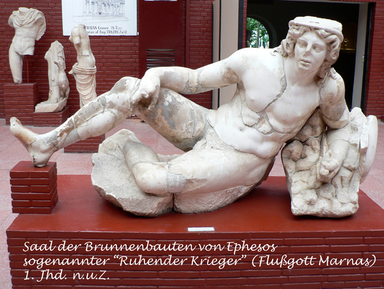 Die beiden Statuen des Flussgottes Marnas befinden sich im Ephesos-Museum Selçuk. Der ephesische Flussgott wurde auf Provinzialmünzen des Kaisers Domitian abgebildet.