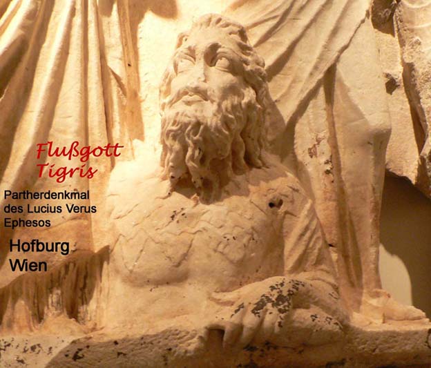 Der "Flußgott Tigris" ist ein Teilstück des Parther-Denkmals des Lucius Verus, das heute in der Wiener Hofburg zu sehen ist. Die Bruchstücke des Siegesmonumentes wurden anfang des 20. Jahrhunderts durch österreichische Archäologen in Ephesos entdeckt. Man vermutet daß das Denkmal in der Nähe der Celsus-Bibliothek stand.