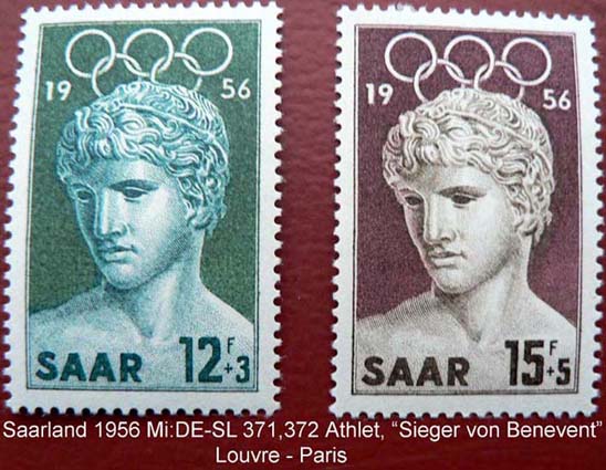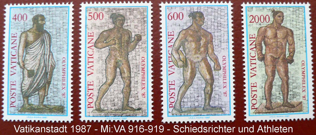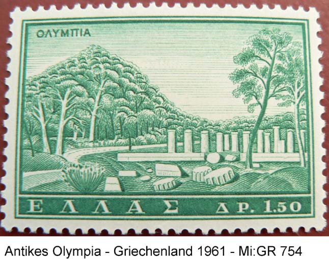 1987 zeigt das Heraion in Olympia und den Diskobolos des