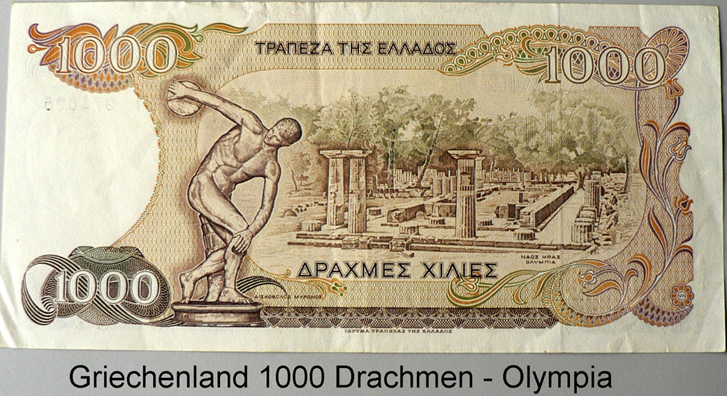 Die Rückseite der griechischen Banknote aus dem Jahr