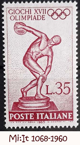 Die 200-Lire Marke anläßlich der Sommerolympiade1960 in Rom zeigt die