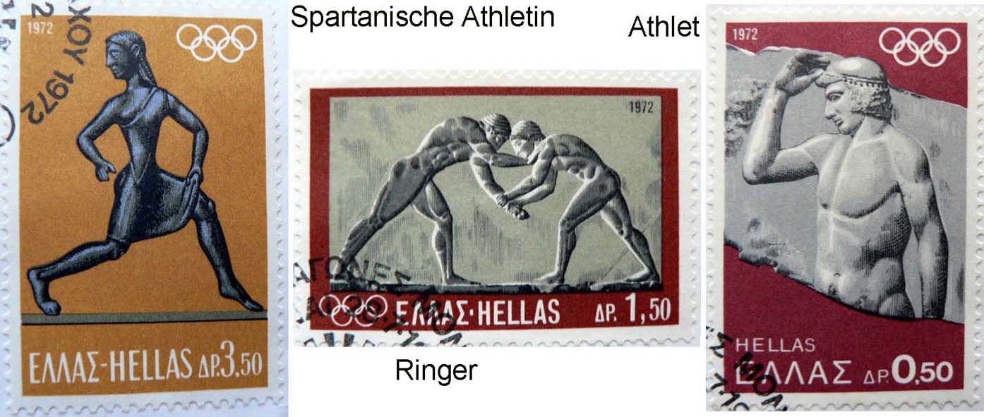 Auf dem 3,50-Drachmen-Wert ist eine spartanische Athletin abgebildet. Frauen