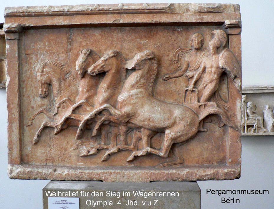 Faustkampf, Pankration und im Hippodrom Wagenrennen mit Zwei- und Vierspännern.