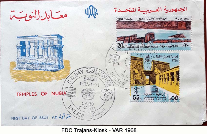 Der Trajanskiosk befand sich vor der Errichtung des Nasser-Staudamms auf der Insel Philae und wurde durch die italienische Rettungsmission auf die höher gelegene Insel Agilkia transportiert und wieder aufgebaut.