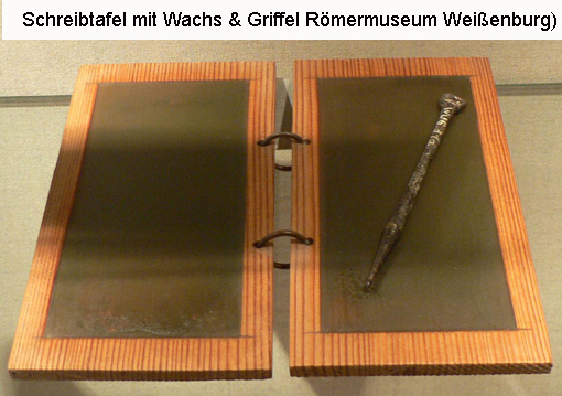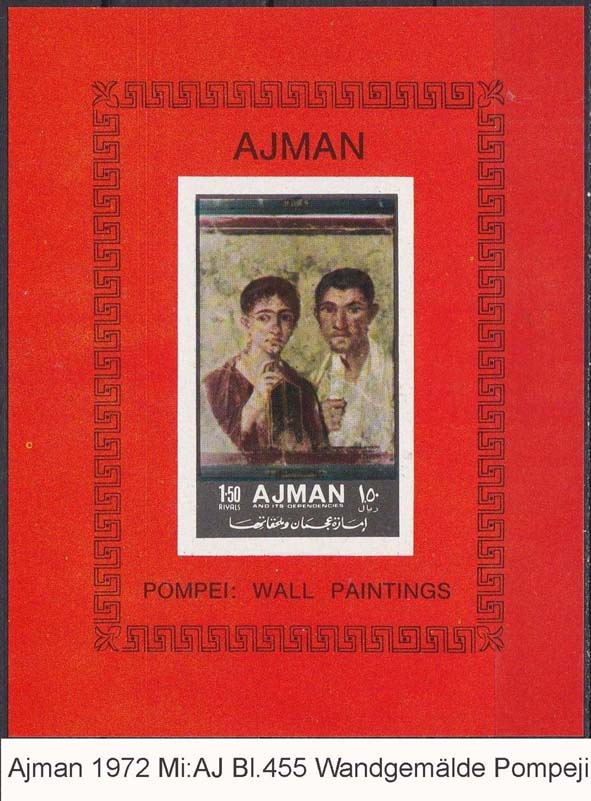 Das auf dem arabischen Block dargestellte Gemälde zeigt ein Ehepaar und stammt aus dem Haus der Brüder Terentius. Der Dargestellte Terentius Neo war ein Rechtsgelehrter und hält und hält eine Schriftrolle, wohl seinen Ehevertrag. Seine Frau hält ein Wachstäfelchen mit Schreibgriffel. Es handelt sich wahrscheinlich um ein Dyptichon zur Notiz von Haushaltsaufgaben.