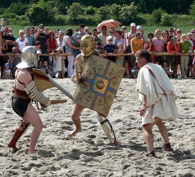 Gladiatoren waren lang ausgebildete spezialisierte Profikämpfer, die in genau definierten Gruppen als Paare auftraten. Ein Kampfrichter überwachte den Kampf auf Einhaltung der Regeln. Bei im Amphitheater durchgeführten Massengemetzeln, bei denen es sich um Hinrichtungen handelte, traten nie echte Gladiatoren auf. Die Lebensbedingungen der Gladiatoren waren hart, Verpflegung und medizinische Betreuung aber überdurchschnittlich. Freie Gladiatoren erhielten ein Viertel und Sklaven ein Fünftel des sehr hohen Preisgeldes. Ein Freikauf aus dem Sklavenverhältnis war möglich.