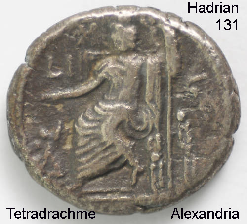 Die Titusmünze zeigt den Serapiskopf mit getragenem Kalathos. Auf der Münze des Reisekaisers Hadrian thront Serapis als Herr der Unterwelt mit Höllenhund Kerberos an seiner Seite.