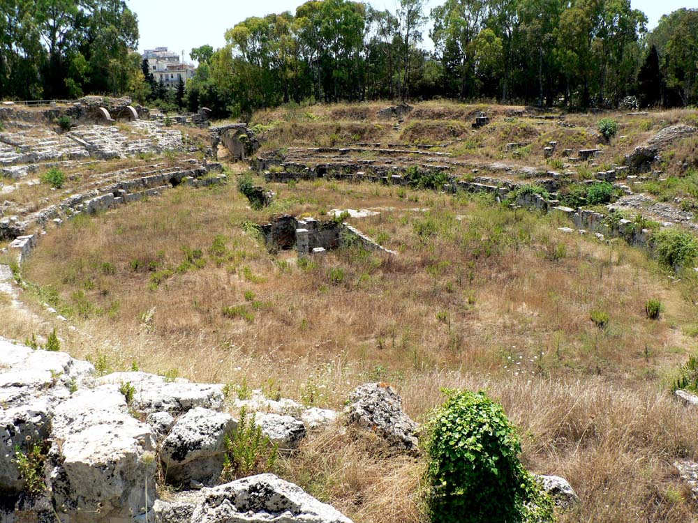 Das römische Amphitheater in Syrakus ist das wichtigste Bauwerk dieser Art in Sizilien und wurde im 3. Jahrhundert n.u.Z. errichtet. Es wurde größtenteils direkt in den Fels gehauen und ist 140 m lang und 119 m breit. Die Arena ließ sich mit Wasser füllen und für die Nachstellung von Seekämpfen verwenden. Aufgrund der Bautechnik und Kalksteinfragmenten einer monumentalen Inschrift verorten einige Archäologen das Bauwerk in die frühe augusteische bzw. neronische Zeit. Das Amphitheater wurde 1839 von Domenico Lo Faso Pietrasanta ausgegraben.