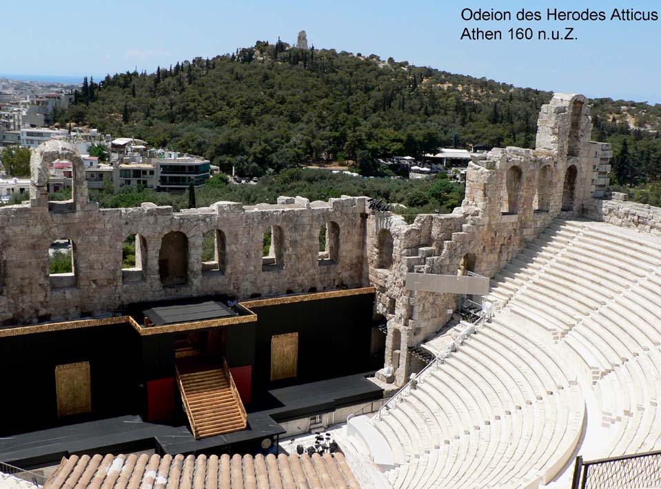 sehr reiche Athener Bürger Herodes Attikus. Der in den Felsgrund der Akropolis